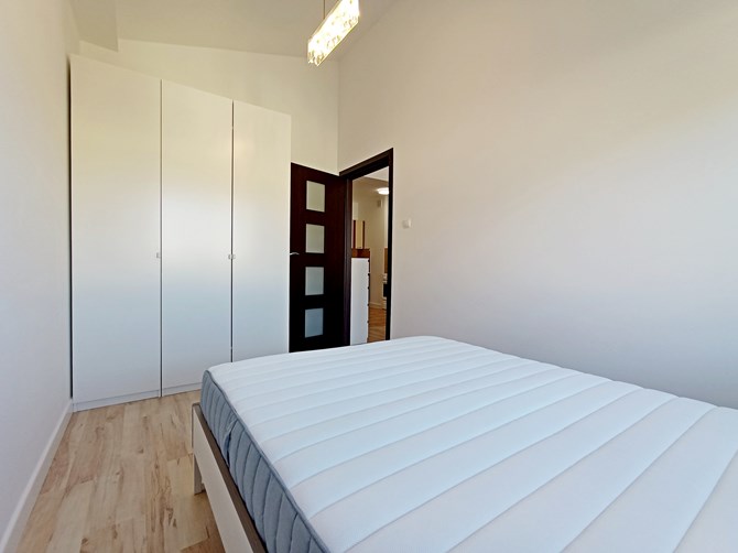 Sypialnia: podwójne łóżko z materacem, szafa.
