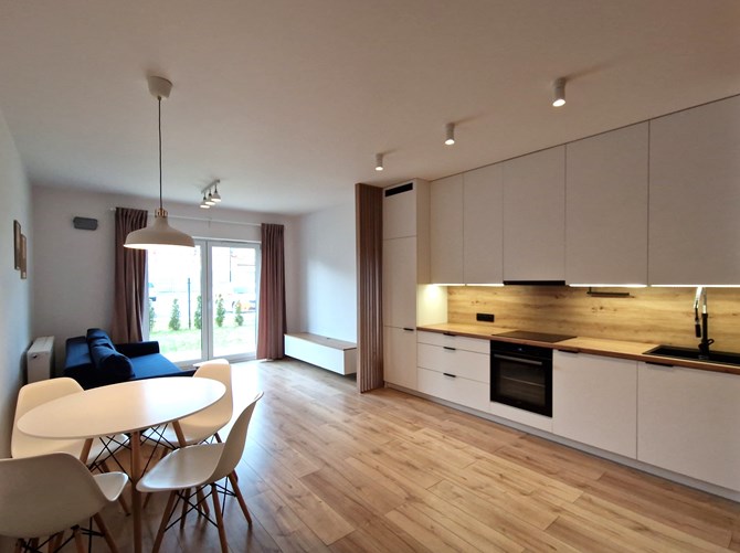 Do wynajęcia kawalerka z ogródkiem w apartamentowcu przy ul. Wróblewskiego 21N w Łodzi.