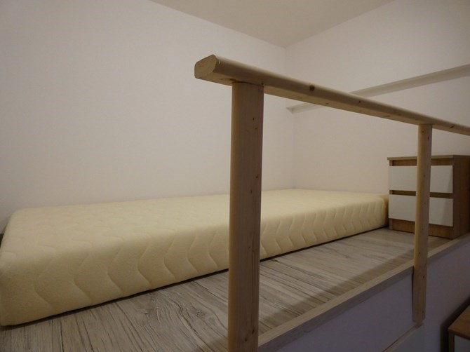 Każdy pokój wyposażony jest w antresolę, co zapewnia dodatkową przestrzeń i wygodę.
