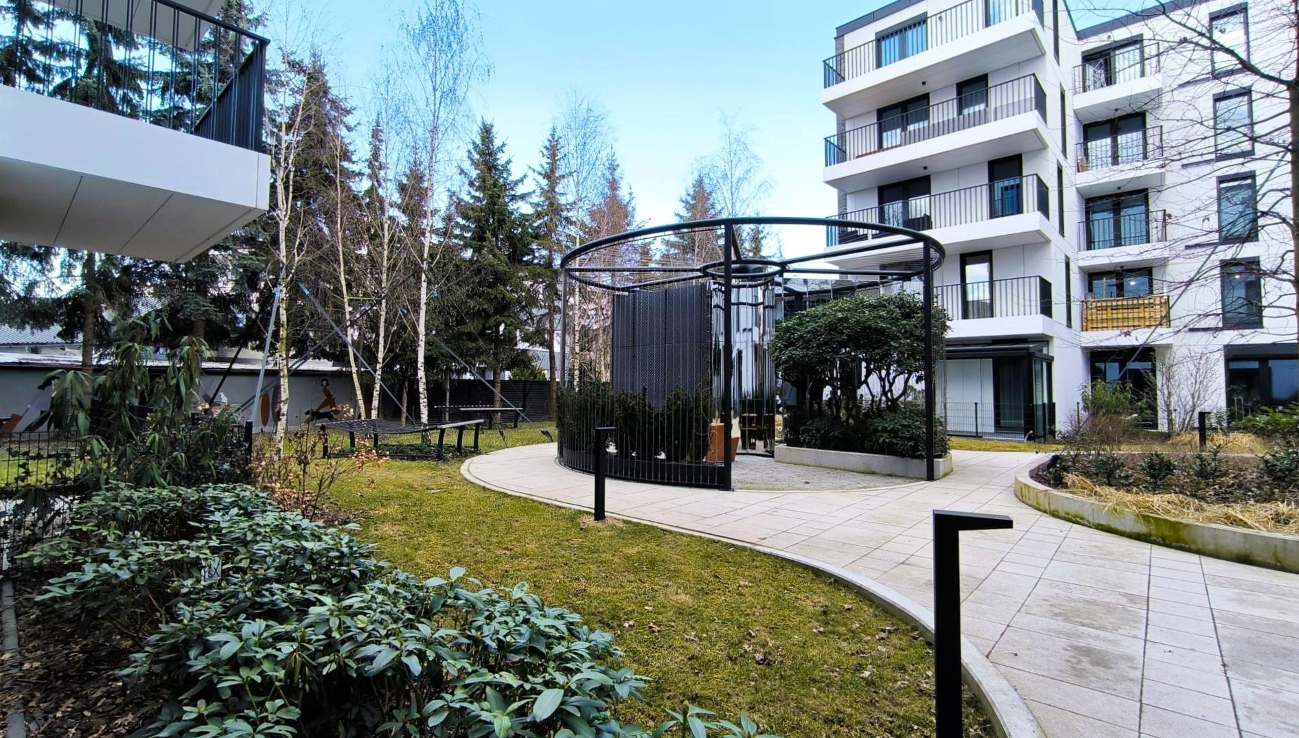 Budynek oferuje liczne udogodnienia: sala coworkingowa z czytelnią, sala fitness i jogi, sala klubowa z kuchnią i częścią wypoczynkową, sala gier, sala kinowa, strefa dla dzieci, rowerownia, myjnia samochodowa, pomieszczenie majsterkowicza oraz zewnętrzne strefy relaksu i plac zabaw.