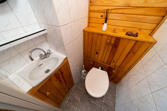 WC: umywalka z szafką.