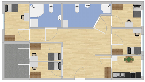 Pokój o powierzchni 8 m², część wspólna 22,3 m².