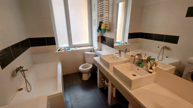 Łazienka 1 (razem z WC): umywalka, wanna, lustro.