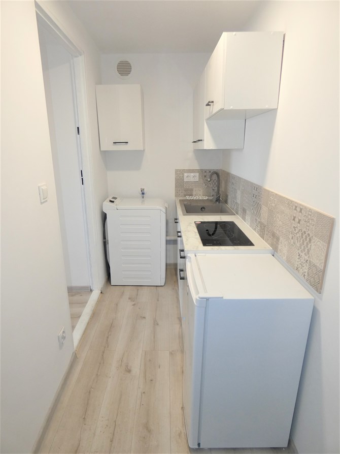 Aneks kuchenny: lodówka, zabudowa kuchenna, zlew, pralka