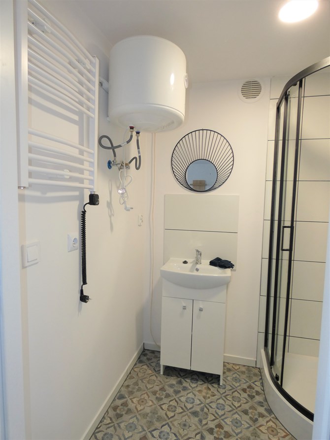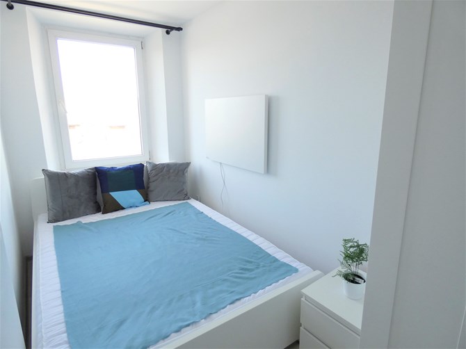 Składa się z salonu, sypialni, aneksu kuchennego i łazienki z WC