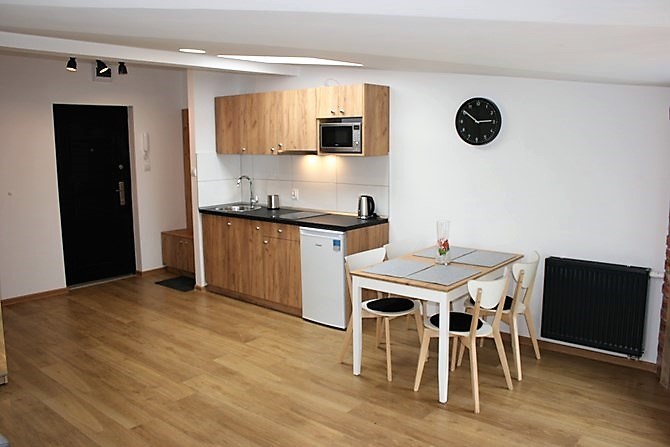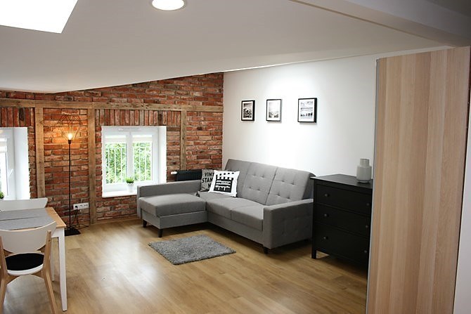 Do wynajęcia przytulna i zadbana kawalerka z pełnym wyposażeniem, idealna dla jednej osoby lub pary, przy ul. Legionów 75.