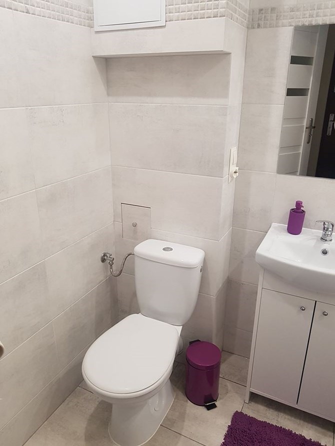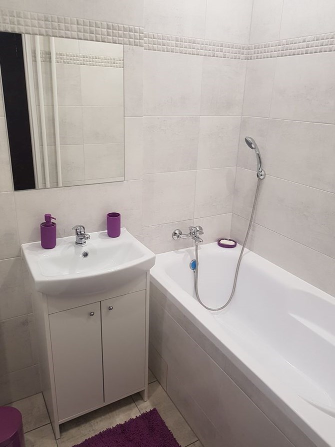 *Łazienka: wanna, umywalka z szafką, WC kompakt, lustro