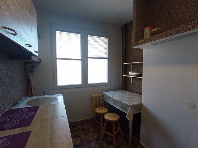 Pokój z wyjściem na balkon, oddzielna kuchnia, łazienka, przedpokój.