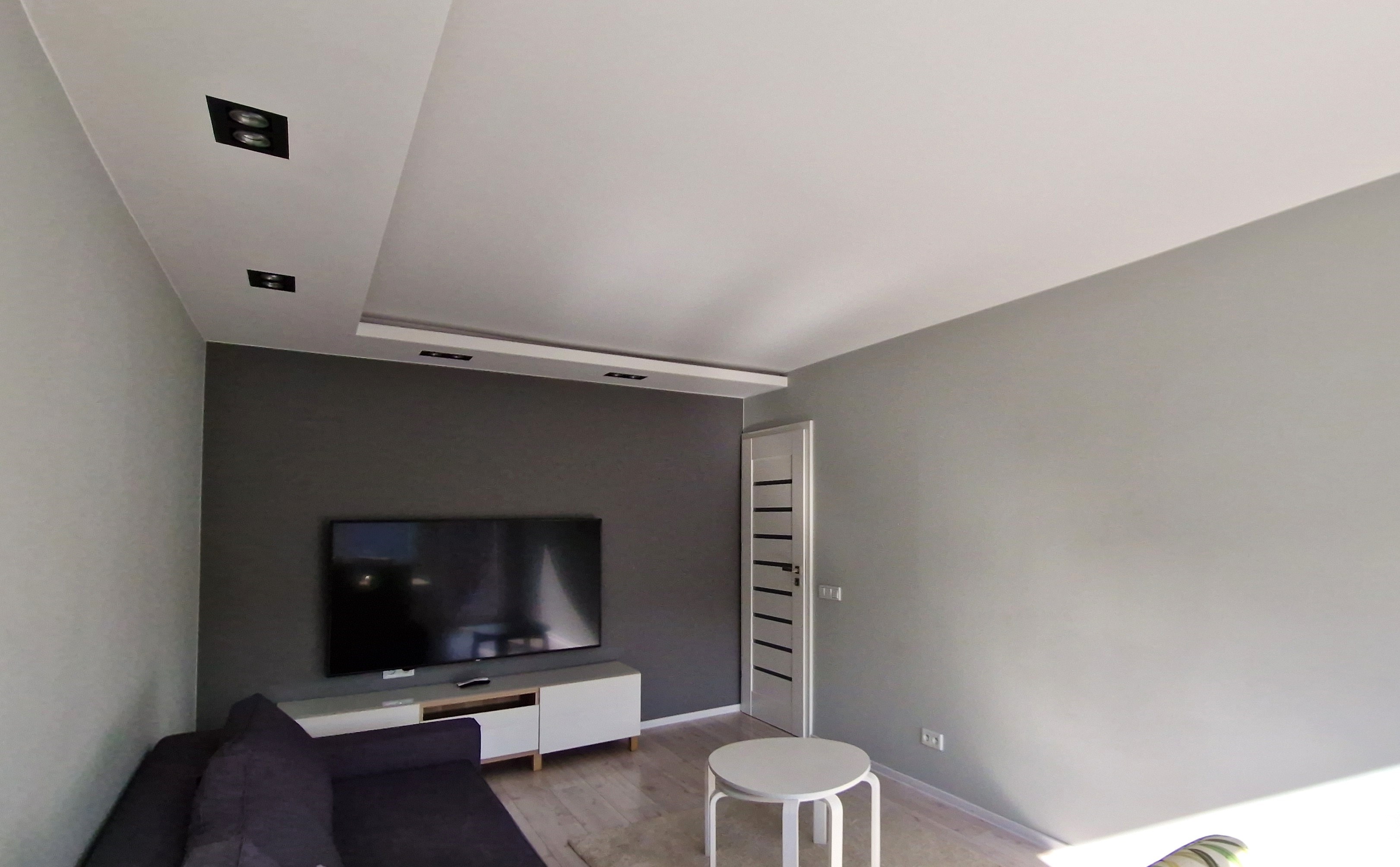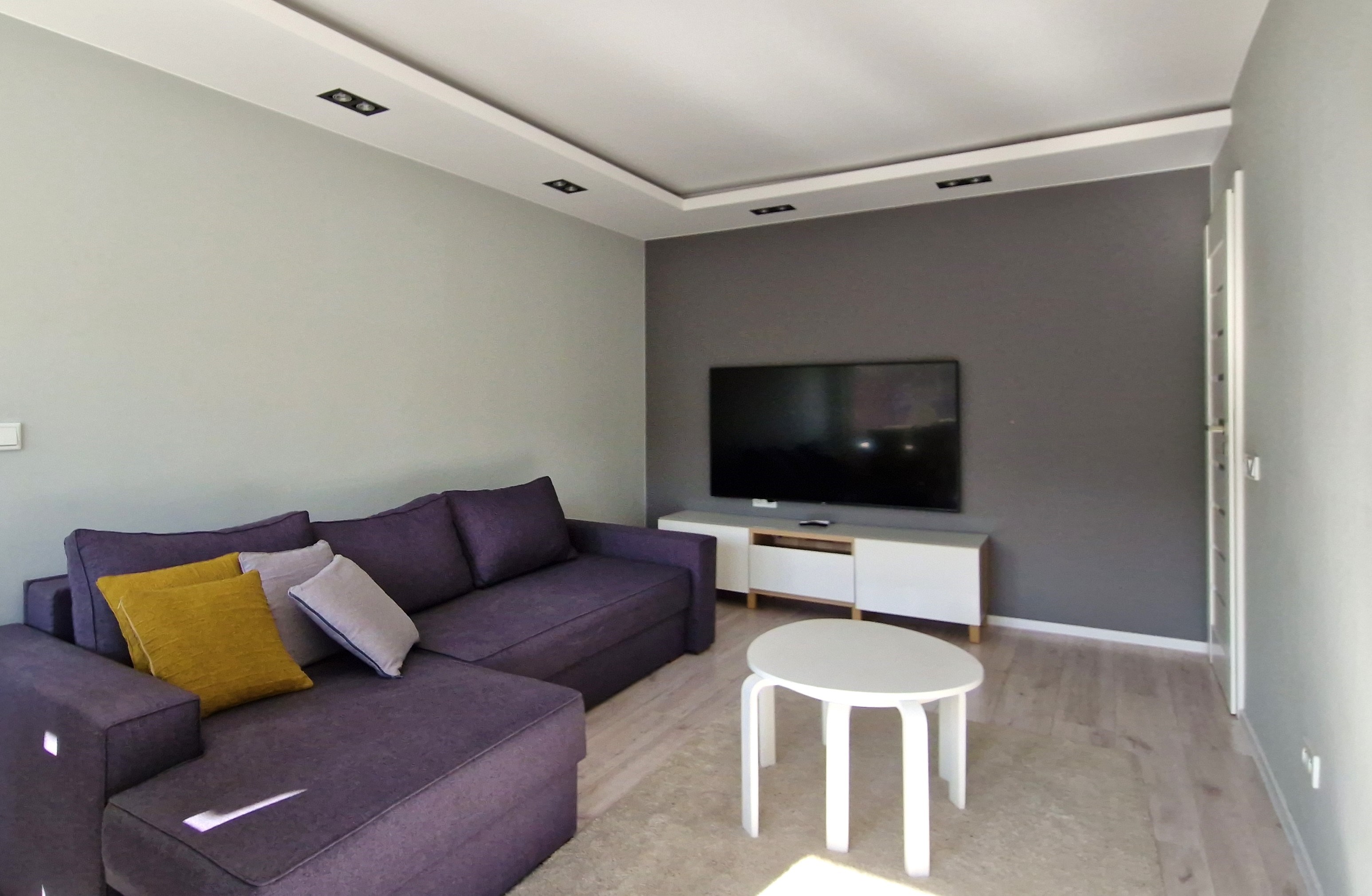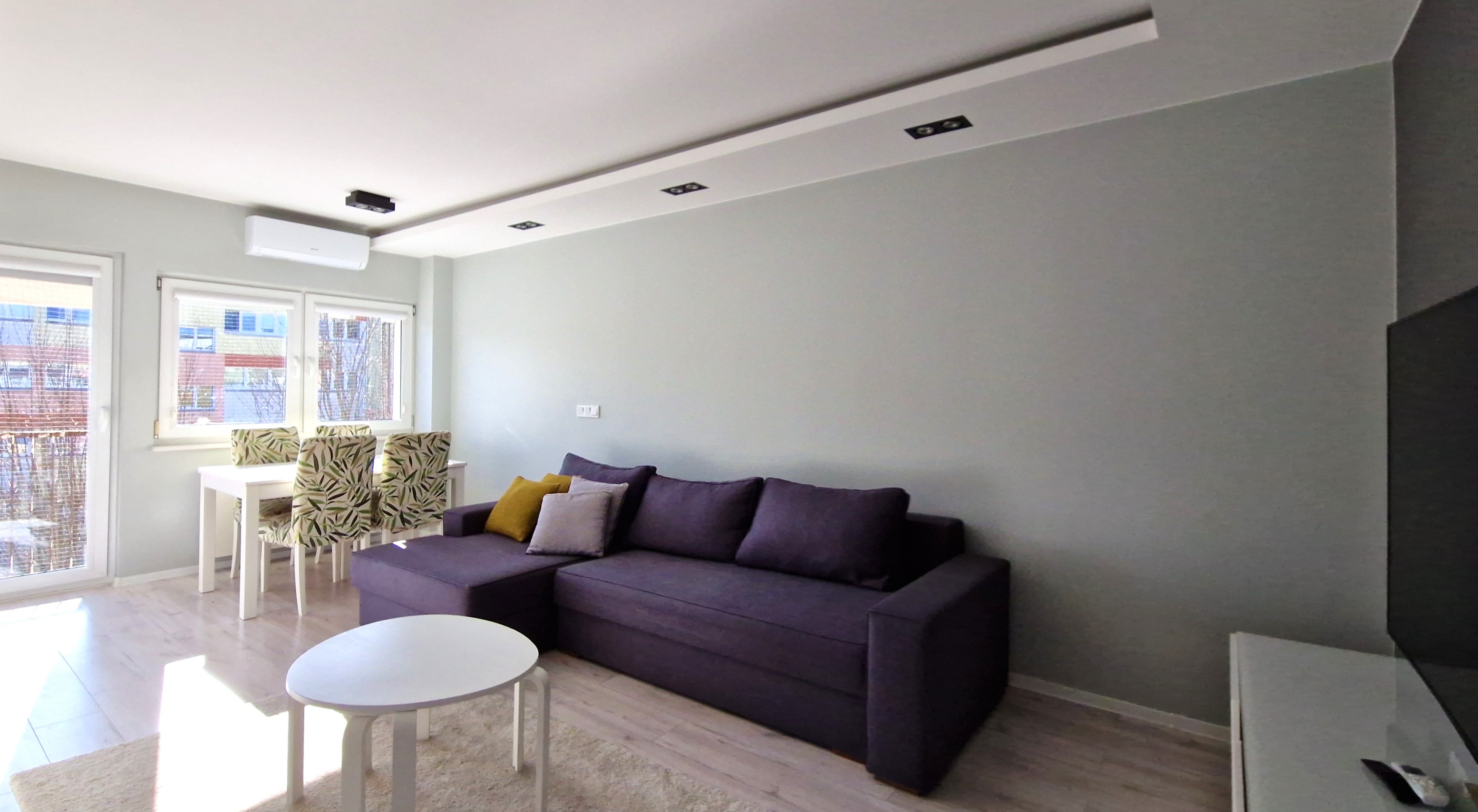 Pokój 1: rozkładana sofa, klimatyzacja, stół z 4 krzesłami, telewizor, komoda, stolik.