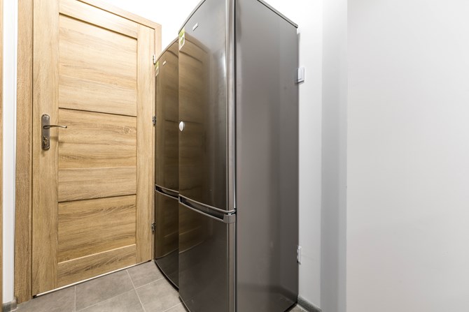 Kuchnia: 2x duża lodówka z zamrażarką, płyta elektryczna 4-stanowiskowa, mikrofalówka i czajnik.