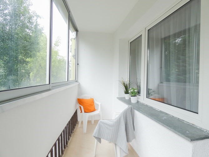 Z pokoju wyjście na zabudowany, przestronny balkon.