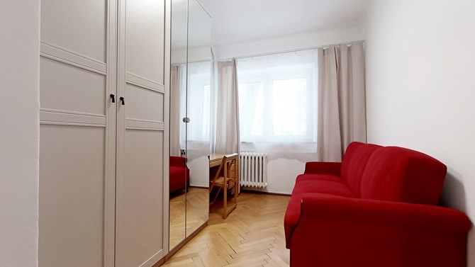 Pokój nr 2: kanapa rozkładana, szafa, biurko, krzesło.