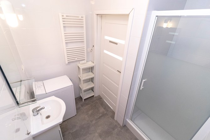 *Łazienka: kabina prysznicowa, pralką, WC i umywalka
