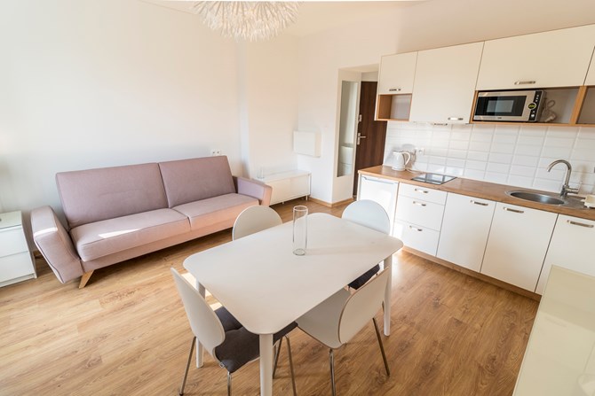 Odległość do przystanku autobusowego - 160 m, Autobusy nr - N1A, N1B, N2, N3, N4A, N4B, N5A, N5B, N6, N7A, N7B, N8, Odległość do przystanku tramwajowego - 80 m, Tramwaje - 2, 3, 6, 11A, 11B, Odległość od lotniska - 6 200 m, Odległość od stacji PKP - 1 500 m, Odległość do dworca autobusowego - 1 500 m