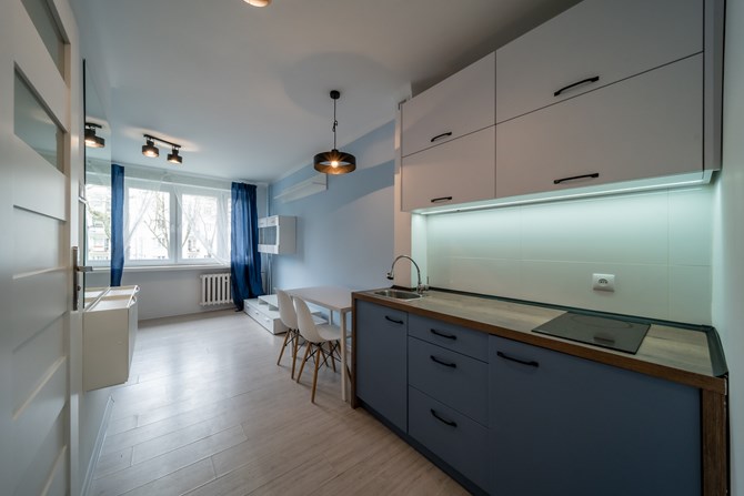 Do wynajęcia nowoczesna i w pełni wyposażona kawalerka przy ul. Łącznej 11 w Łodzi, w okolicach Czerwonego Rynku.