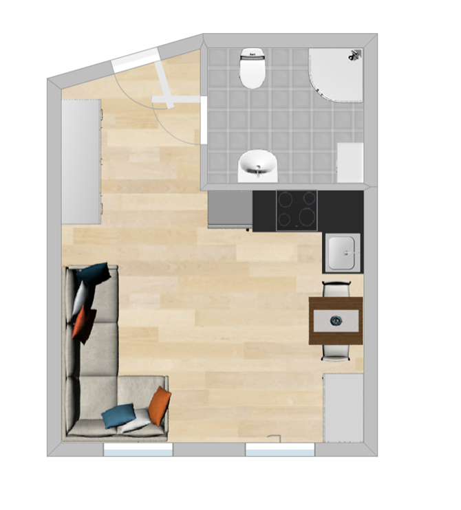 Lokal o powierzchni 24 m² znajduje się na 2. piętrze i posiada miejskie ogrzewanie.