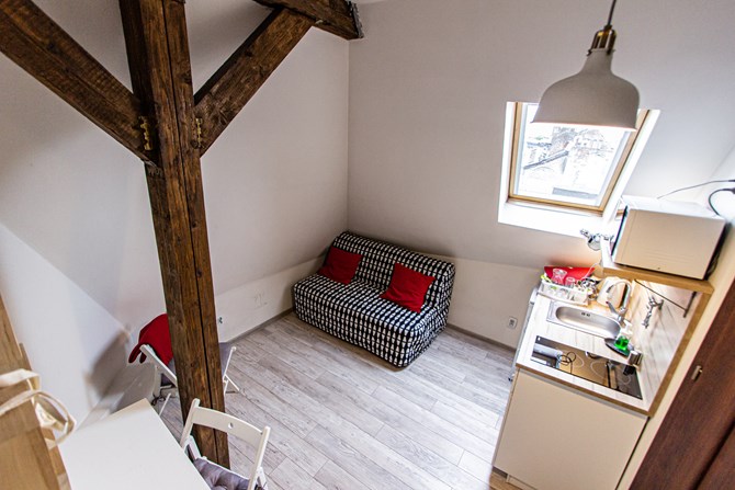 Do wynajęcia jasne i funkcjonalne studio przy ul. Basztowej 10 w Krakowie, zlokalizowane tuż przy Plantach.