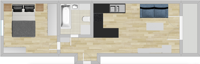 Przestronne mieszkanie o powierzchni 47 m².