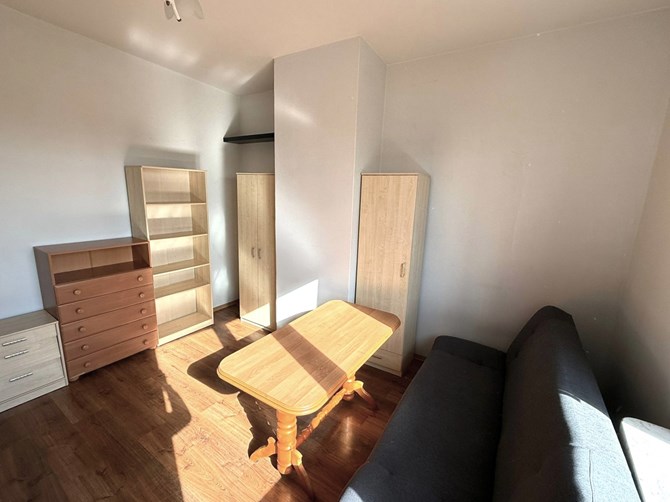 Pokoje: biurko, komoda, szafa, szafka RTV, dwie rozkładane wersalki.