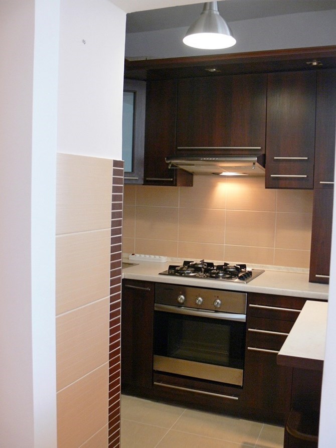 Kuchnia: szafki i niezbędny sprzęt AGD (lodówka, piekarnik, płyta gazowa, zmywarka).