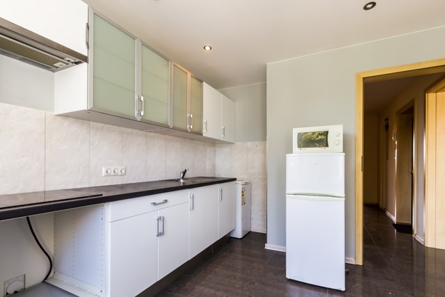 Kuchnia: meble kuchenne, stół z 4 krzesłami, płyta elektryczna, mikrofalówka, lodówka, okap.