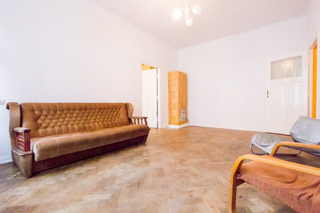 Pokoje: sofy, fotele, szafa typu Komandor, piec kaflowy.