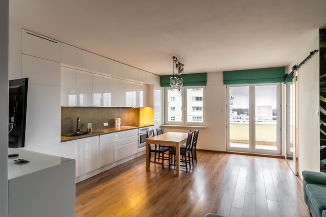 *Трехкомнатная квартира более высокого стандарта с балконом и видом на центр Варшавы.