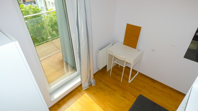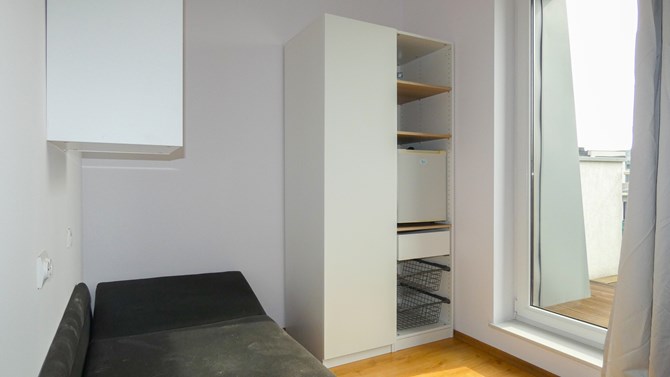 Do wynajęcia pokój z balkonem w 8-pokojowym mieszkaniu przy ulicy Kościuszki 89 we Wrocławiu.