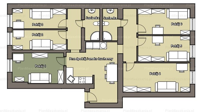 Do wynajęcia pokój nr 1 w sześciopokojowym mieszkaniu przy ul. Dąbrowskiego 21 we Wrocławiu.