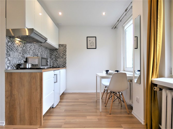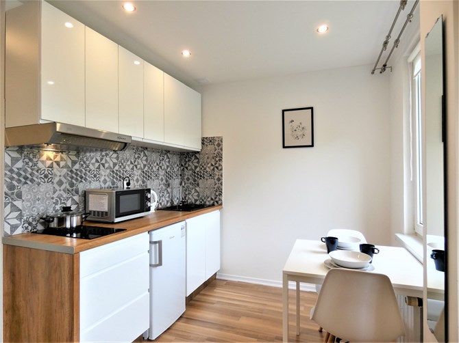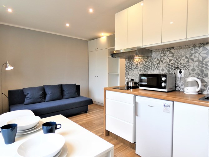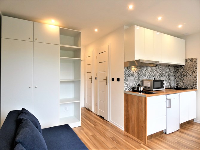 Do wynajęcia komfortowo wyposażona kawalerka o powierzchni 18 m² przy ul. Pilotów 26 w dzielnicy Olsza.