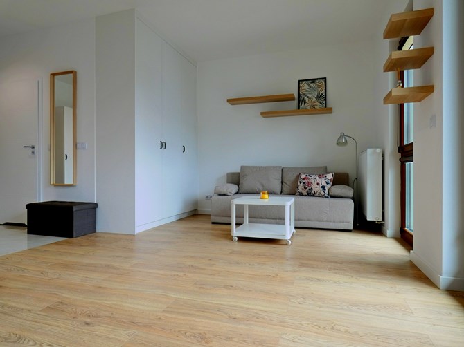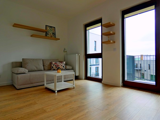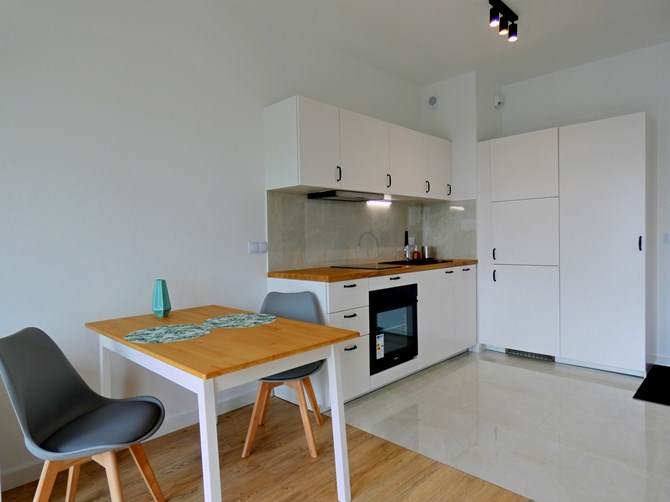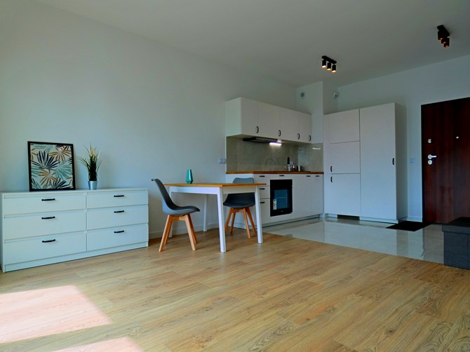 Do wynajęcia duża kawalerka z balkonem i mp zlokalizowana w inwestycji przy ulicy Herbu Janina 4 w Warszawie.