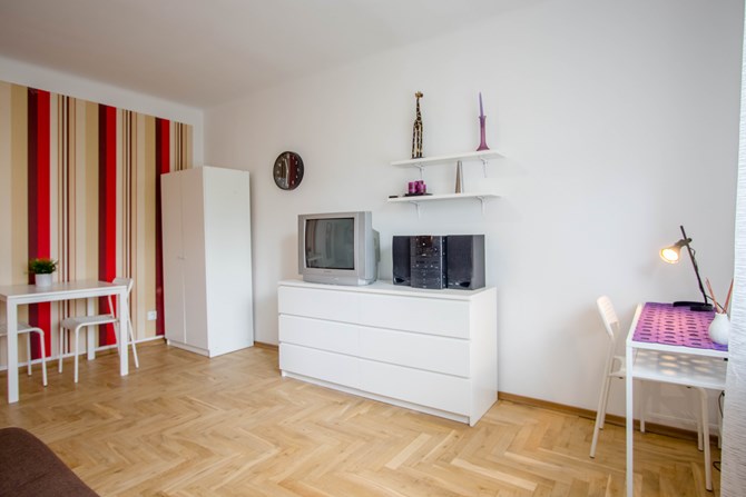 Mieszkanie z ogrzewaniem miejskim, idealne dla jednej osoby lub pary.