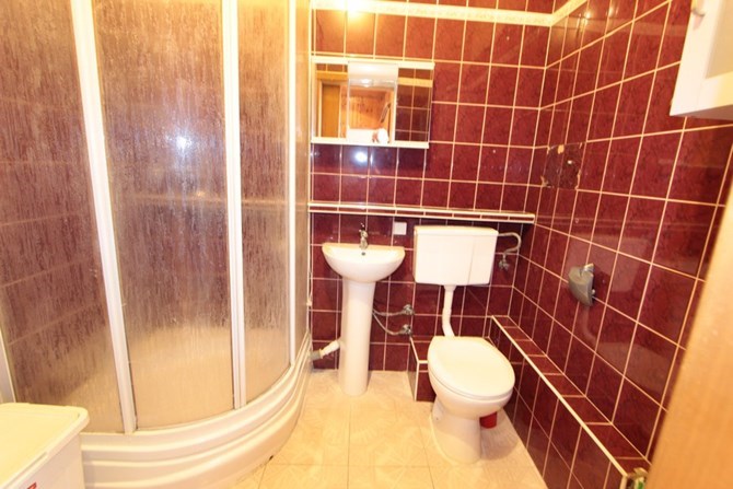 Łazienka: kabina prysznicowa, umywalka, WC.