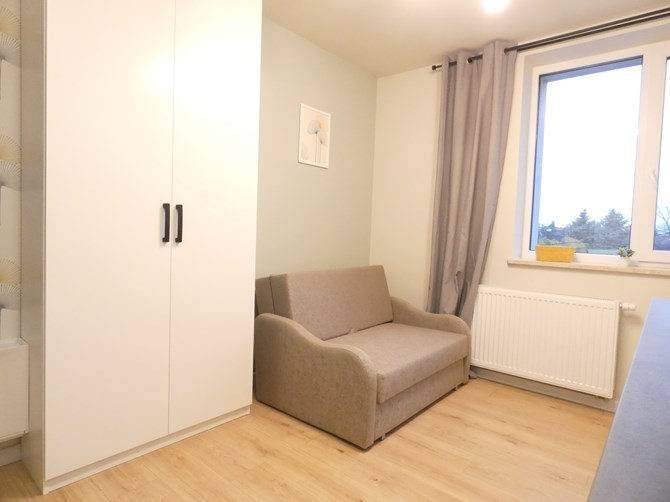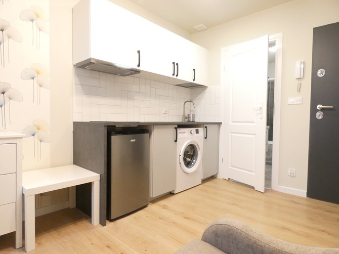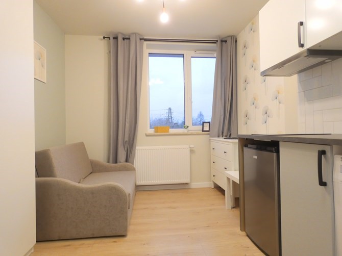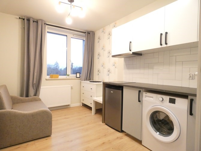 Do wynajęcia przyjazna dla zwierząt mini kawalerka w odnowionym budynku przy ulicy Trojańska 16 w Warszawie (Włochy - Okęcie).