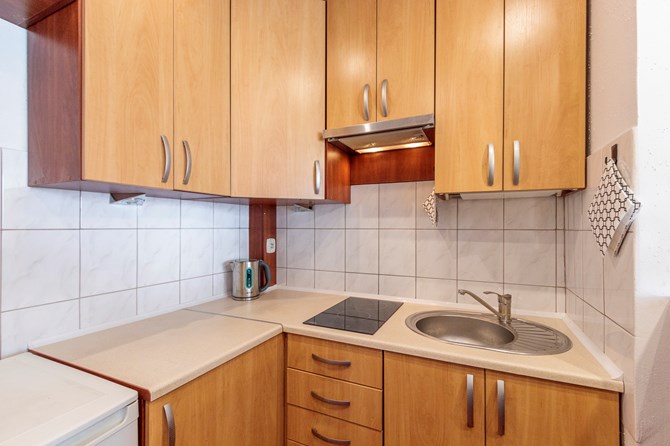 Aneks kuchenny: szafki kuchenne lodówka, kuchenka 2- palnikowa.