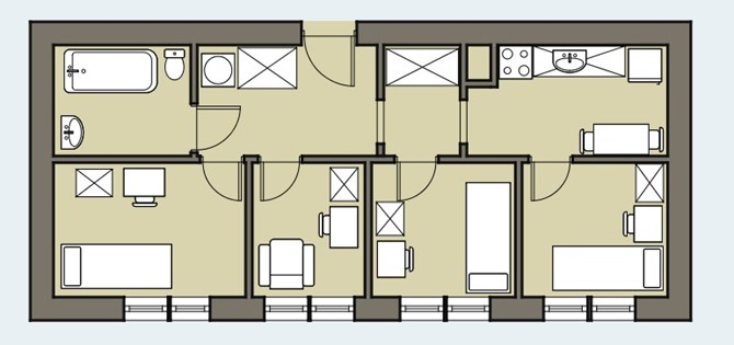 Każdy pokój jest osobny – brak pomieszczeń przechodnich.