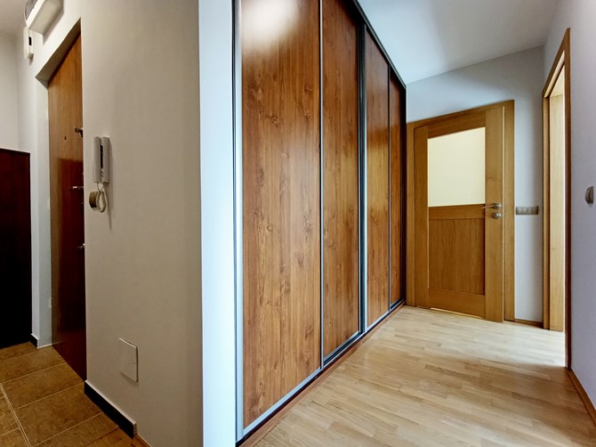 Przedpokój: 2 x szafa wnękowa, szafka na buty, wieszak.