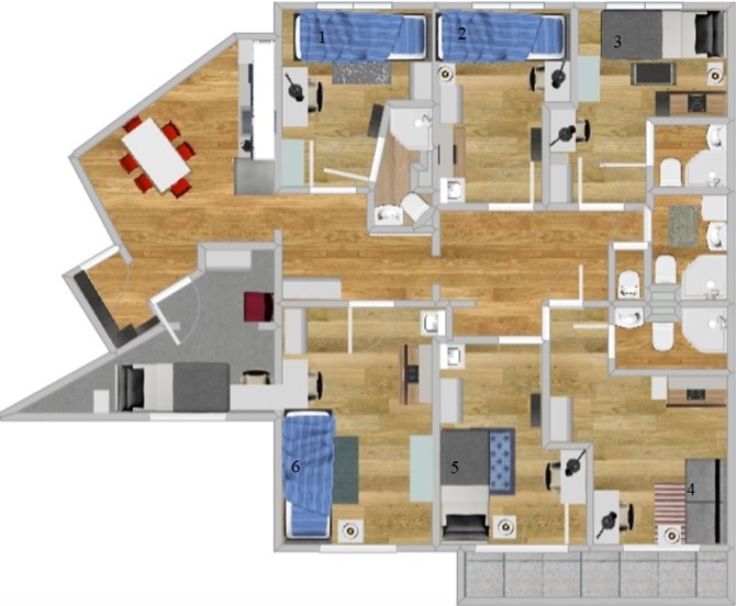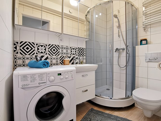 Do dyspozycji lokatorów duża, wspólna kuchnia z stołem i 6 krzesłami oraz szybki internet – 600 Mb/s.