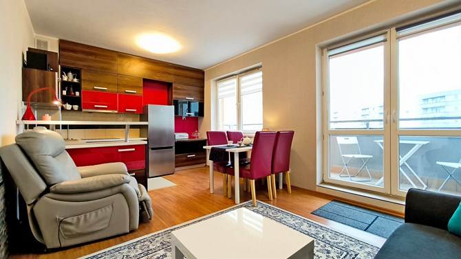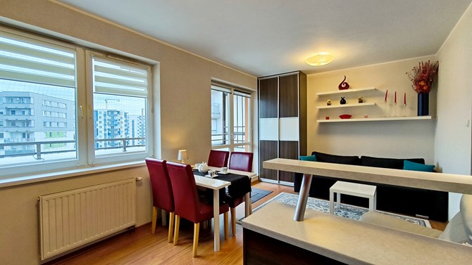 Do wynajęcia komfortowa kawalerka o powierzchni 30 m² na osiedlu Piastów 65 w Krakowie, w spokojnej części Mistrzejowic, z balkonem, pełnym wyposażeniem, dwoma windami oraz świetnym dostępem do komunikacji miejskiej, sklepów i terenów zielonych.