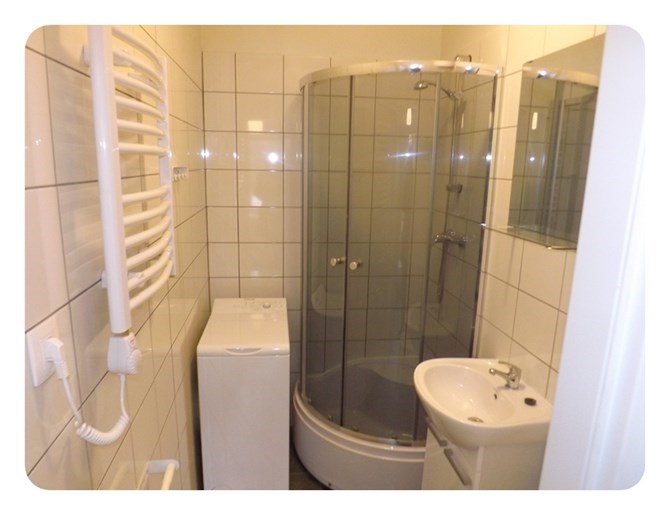 *Łazienka: kabina prysznicowa, umywalka, pralka oraz WC.