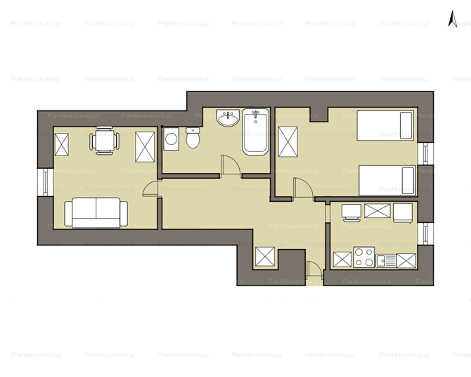 Składa się z dwóch pokoi, kuchni i łazienki