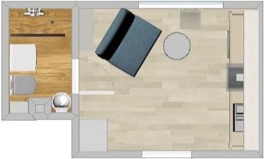 Lokal składa się z salonu połączonego z kuchnią i łazienki.