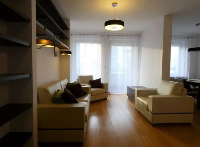Do wynajęcia przestronne, dwupokojowe mieszkanie z balkonem i miejscem postojowym, położone na zamkniętym osiedlu przy ul. Skarbka z Gór 65A w Warszawie.