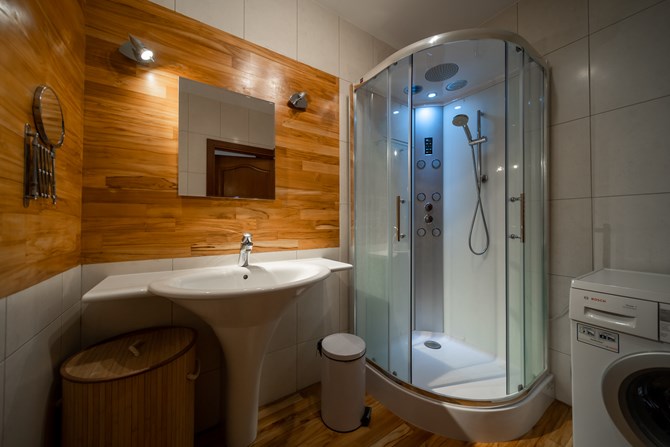 *Łazienka: prysznic, pralka, WC, umywalka, szafka.