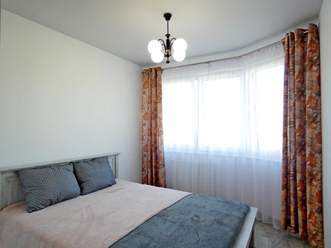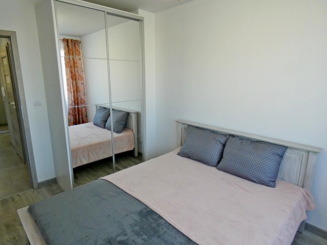 Sypialnia: łóżko podwójne, szafa w zabudowie.