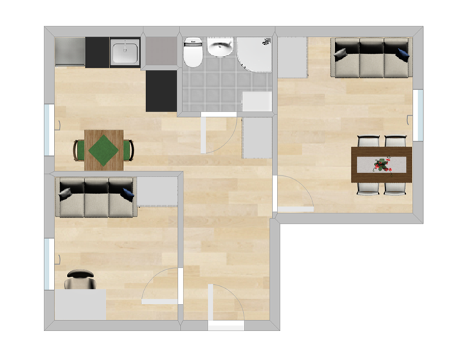 Mieszkanie dwupokojowe o funkcjonalnym, rozkładowym układzie.