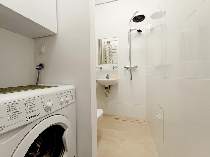 Składa się z salonu z wydzieloną kuchnią,, łazienki z prysznicem i przedpokoju.
