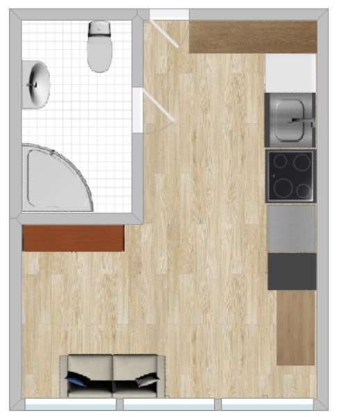 Do wynajęcia funkcjonalna kawalerka o powierzchni 23 m² przy ul. Bór 11 w Częstochowie, położona na 2. piętrze budynku.