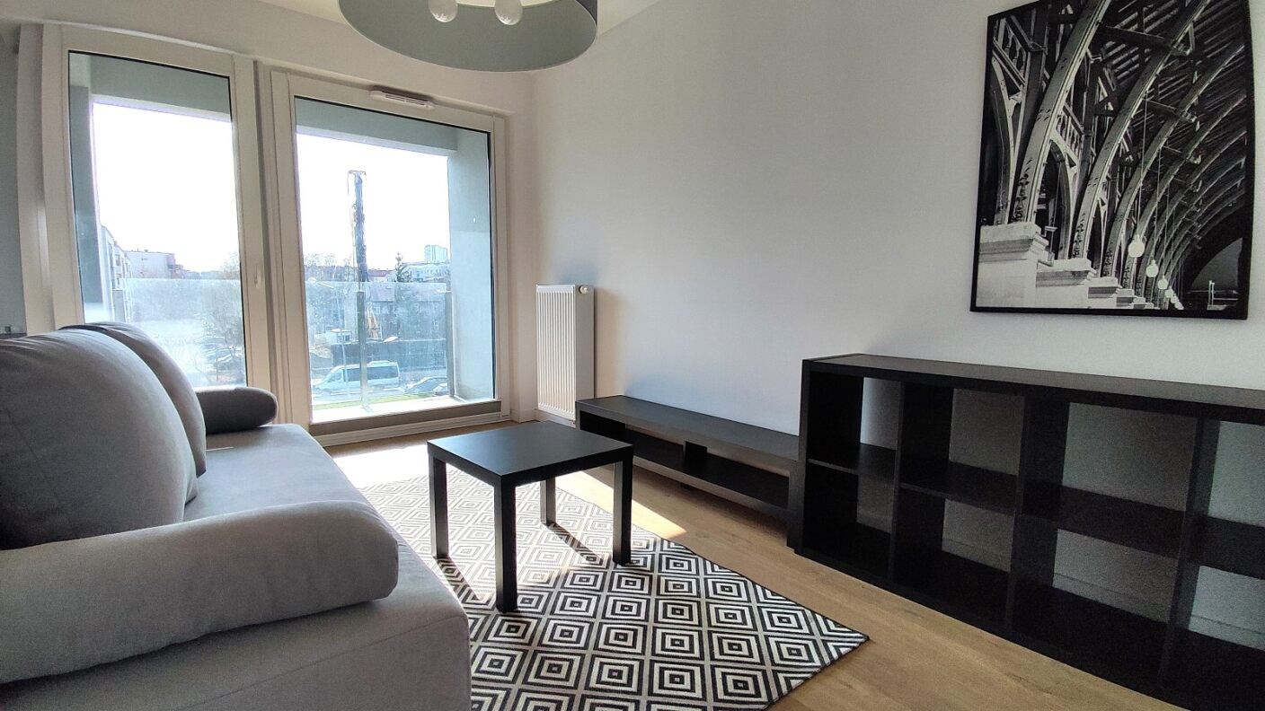 Do wynajęcia funkcjonalne, dwupokojowe mieszkanie z balkonem i miejscem postojowym w garażu podziemnym przy ul. Lema 5 na Grzegórzkach w Krakowie, położone tuż przy Parku Lotników i Parku AWF.