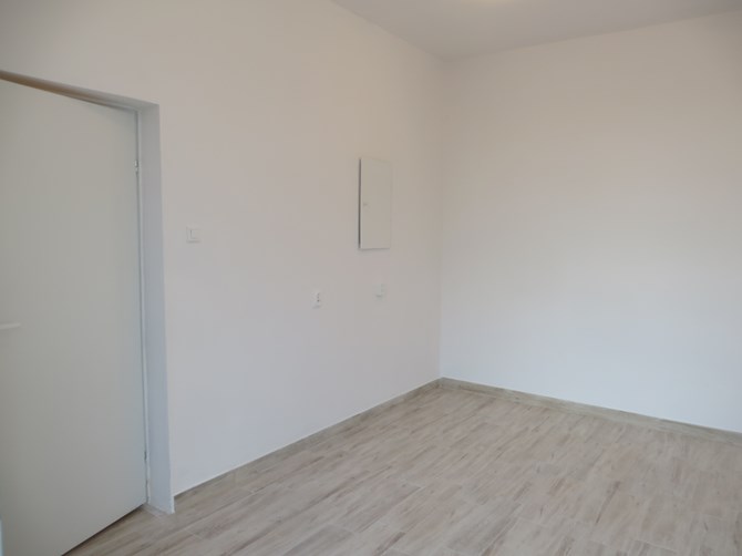 W oknach i drzwiach podwójne szyby zespolone, w głównym pomieszczeniu na ścianach gładź i biała farba.